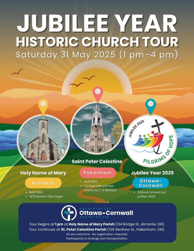 Mark your calendars for the first Jubilee Year Historic Church Tour. On Saturday, May 31st, starting at 1 PM, we will go to Holy Name of Mary in Almonte and St. Peter Celestine in Pakenham. Holy Name of Mary, built in 1869, features an 1875 Warren pipe organ, 150 years old this year. St. Peter […]
