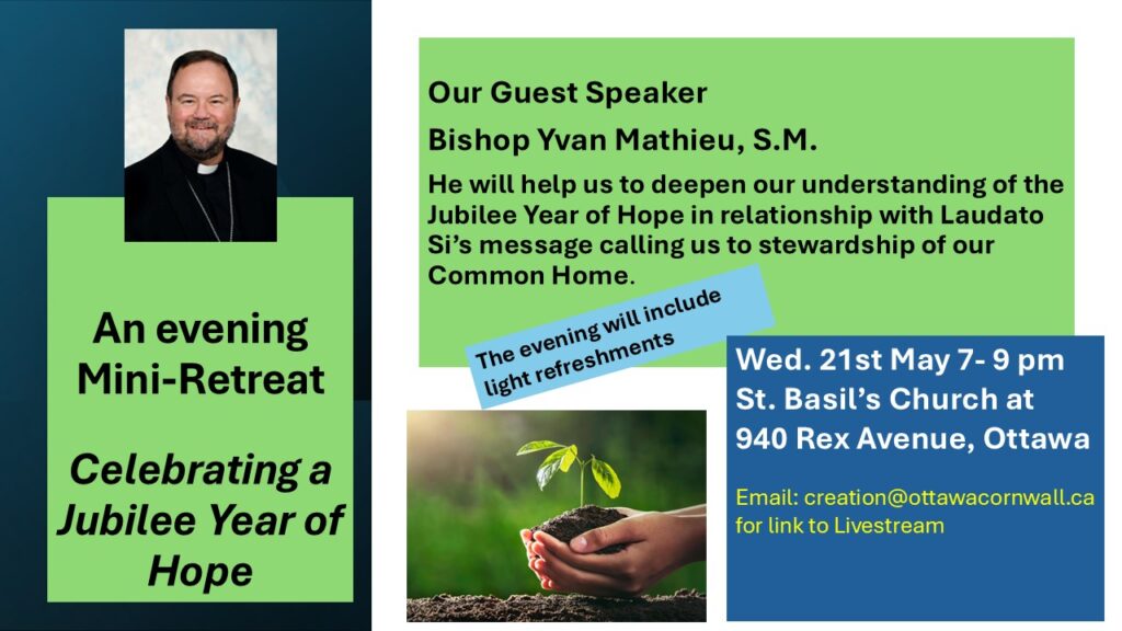 Mgr Yvan Mathieu, S.M. will help us understand the Jubilee Year of Hope and its connection with Laudato Si’s call to stewardship of our Common Home