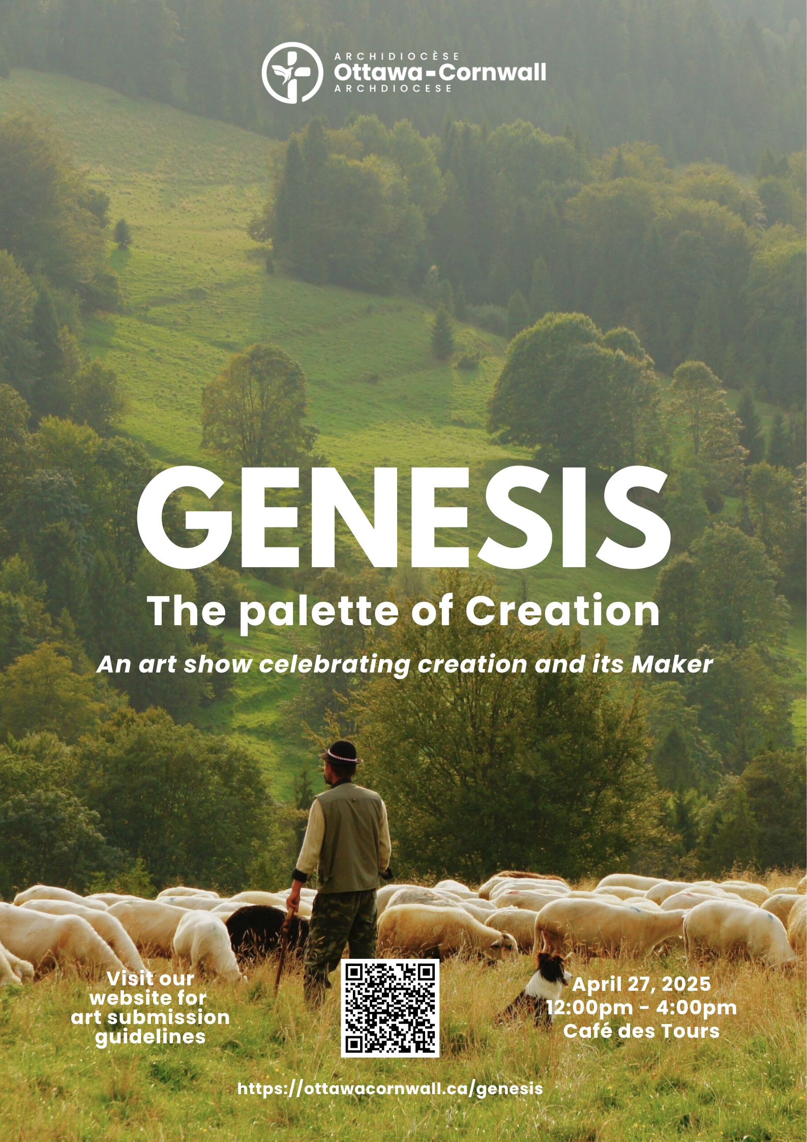 On April 27th from 12pm-4pm, come explore through art the beauty of God the Creator and his creation. Hosted by the Archdiocese of Ottawa-Cornwall at the Café Des Tours, the show will feature local artists with a focus on creation and how we find God through it. Artists can visit ottawacornwall.ca/genesis to learn more about submitting their artwork.