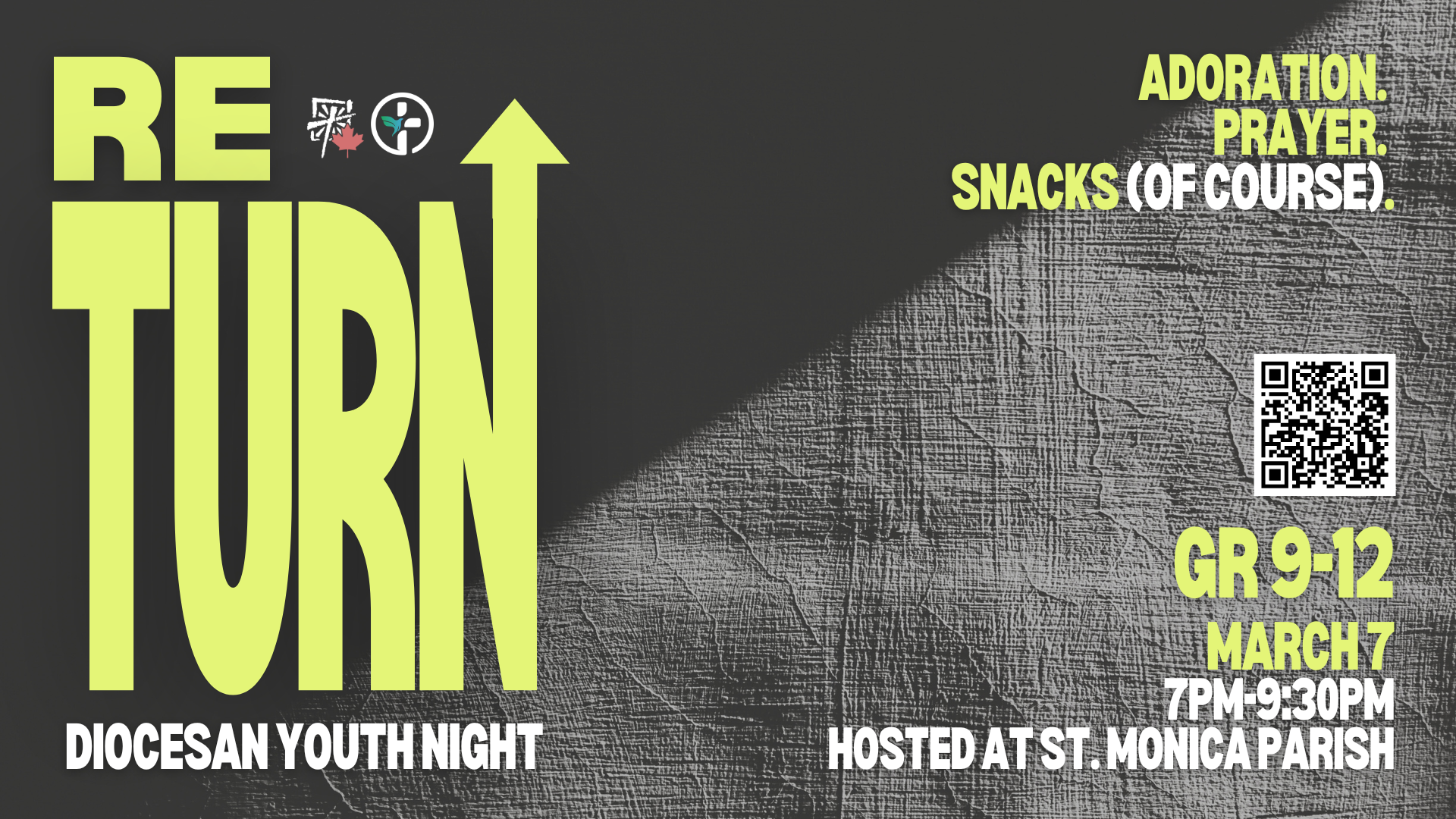 Return is a diocesan youth night for grades 9–12. Step out of the daily noise and focus in on the voice of Christ.